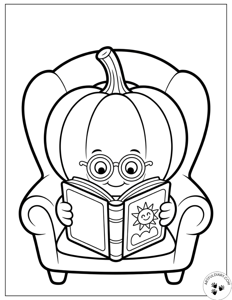 Pumpkin Reading in a Chair — cute Pumpkin coloring pages